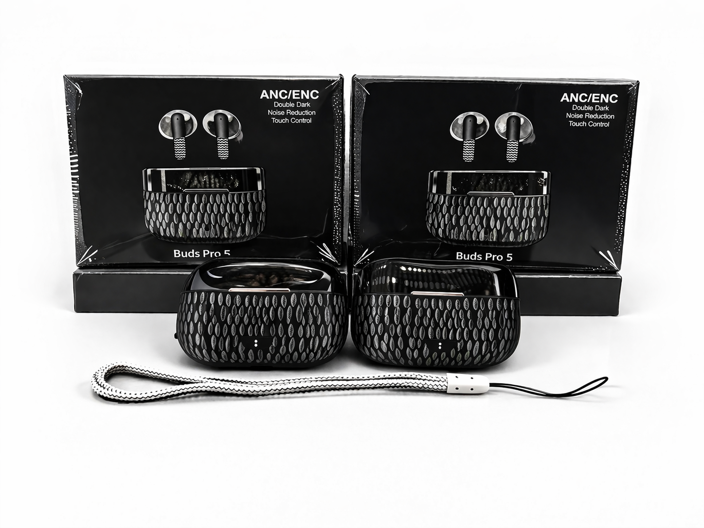 Buds Pro 5 Wireless Bluetooth Earbuds ANC ENC Noise Cancelling | Type-C Charging | Powerful Bass Sound | Touch Control | High Backup Battery | With Rope Strap |